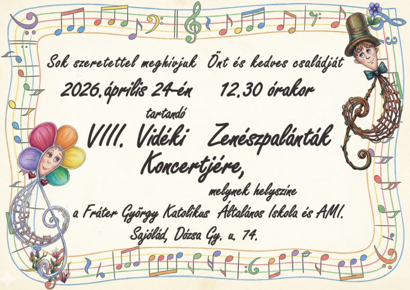 Sok szeretettel várunk minden kedves zeneszerető érdeklődőt a 2026.április 24-én tartandó VIII. Vidéki Zenészpalánták Koncertjére,